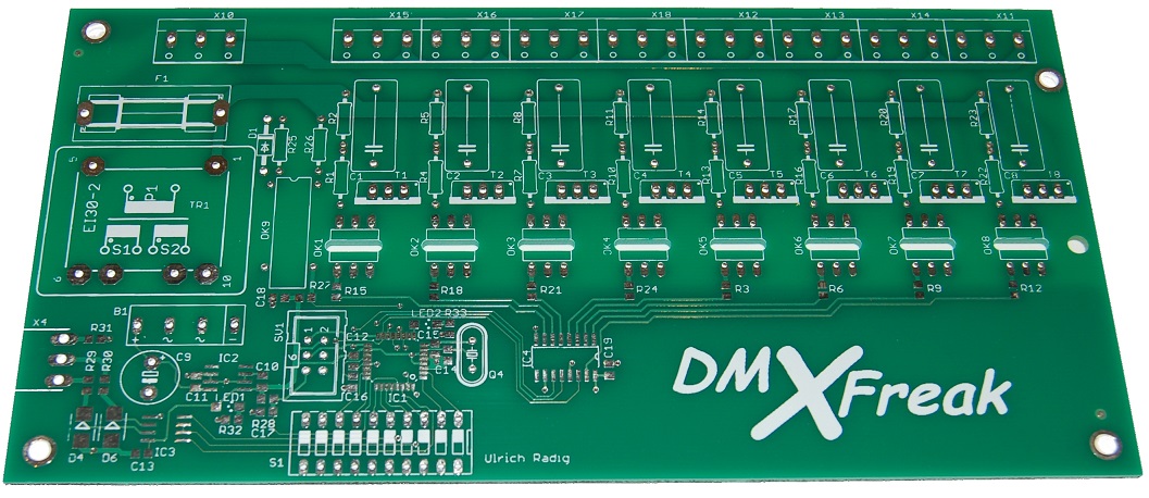 Angeboten wird die Leiterplatte vom DMX Dimmer Projekt. Hierbei handelt es sich um eine unbestückte Leiterplatte.